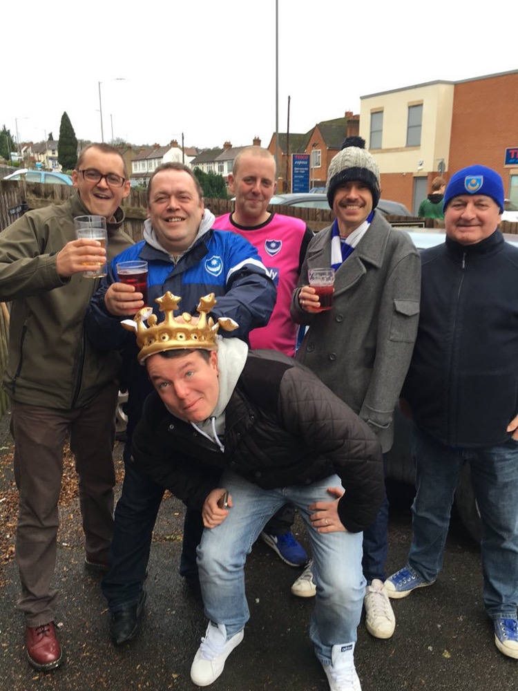 Said goodbye to the kids and met up with my good mate Richard Langley (Langers) to make our way to the Gosport ferry. Once over into the beautiful city of Portsmouth we were met by our chauffeur for the day Mr Dave Underwood. My other good friend, his son, Matt who is also the Pompey Ladies under 9’s manager, was ready with the beers.