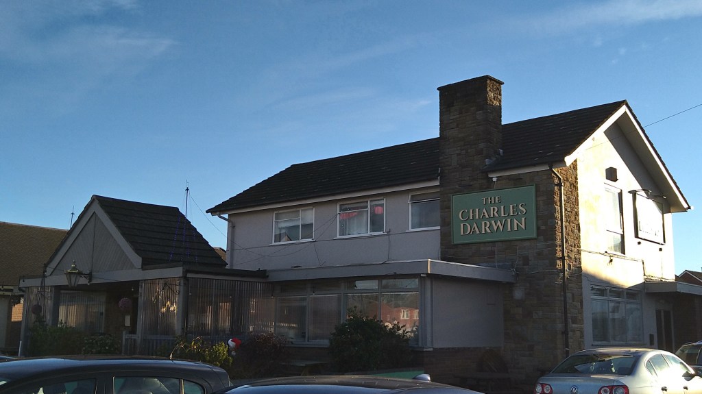 By now it was about 1pm as we walked over to meet fellow Blues fan Adam and his family who were in a pub named after one of the town’s most famous sons, scientist Charles Darwin. We arrived at the Sutton Road hostelry for a soft drink (as I was the nominated driver) and to eat some food we grabbed en route.