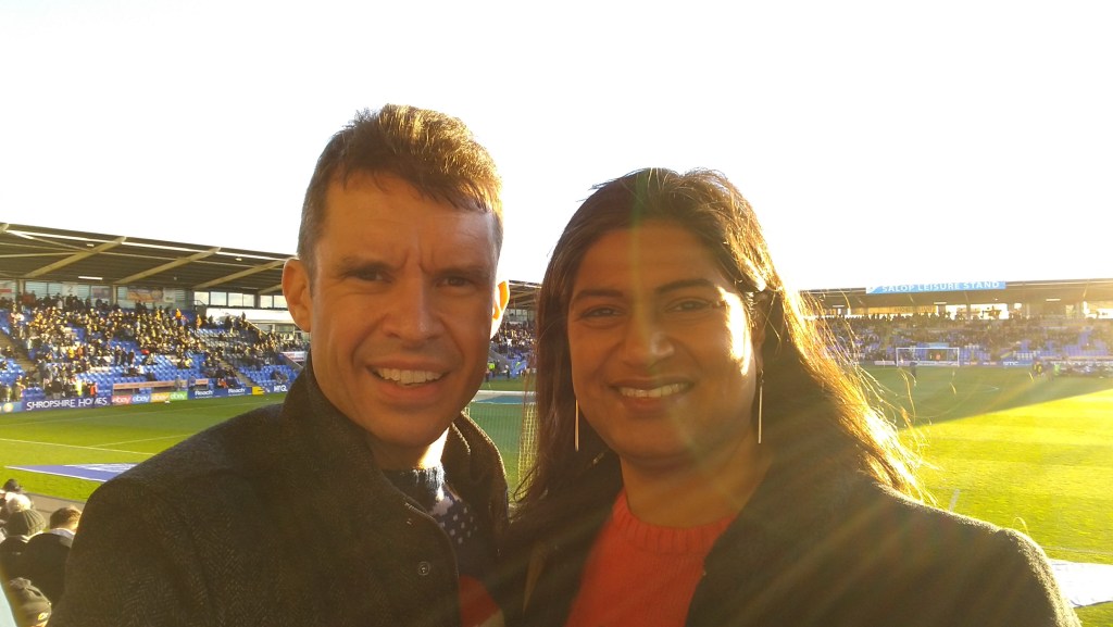 I set off from our Birmingham abode with my wife Ajit around 10:30am for the 47 mile drive on the M6, M54, A5 etc before parking near the Prince Of Wales pub on Bynner Street (just south east of the town centre) where we planned to visit after the game for the Northern Blues AGM function.