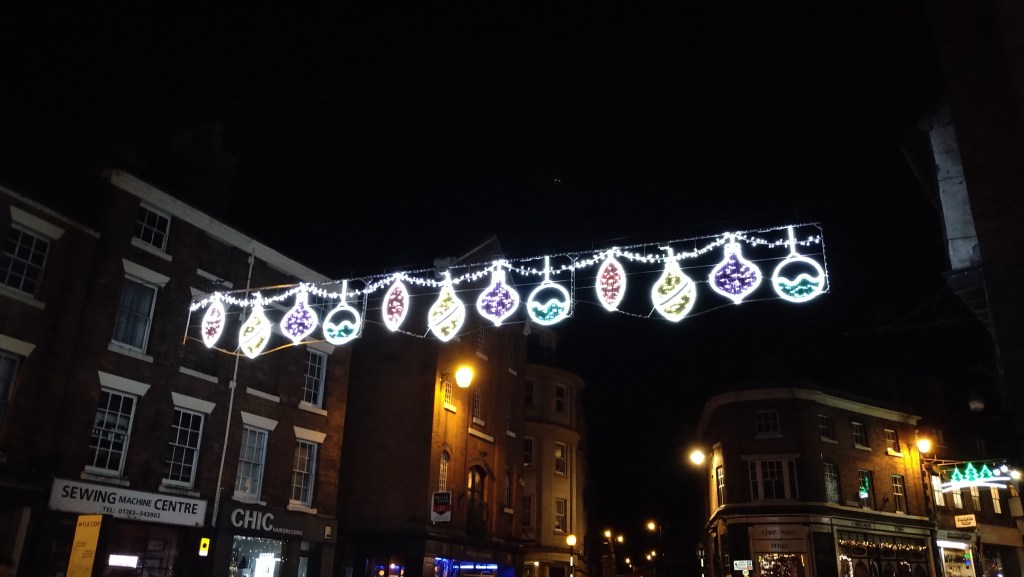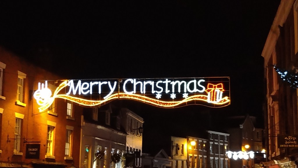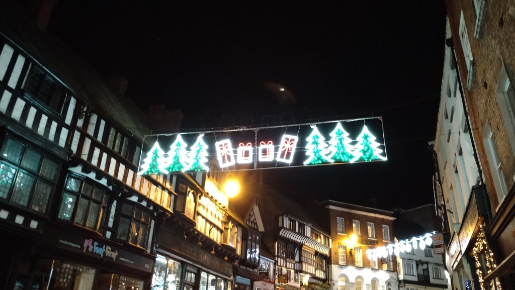 Finally, we couldn’t head back to Brum before seeing Shrewsbury town centre at night with all its Christmas lights – the perfect way to embroider an all-round splendid day out for us.