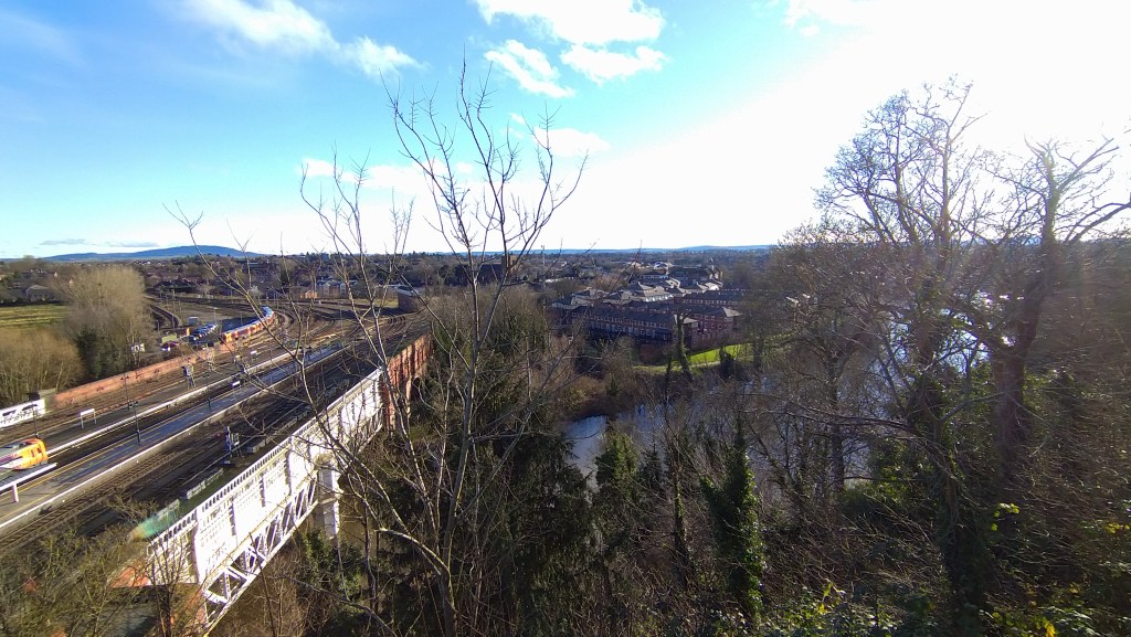 After walking through the main High Street, we popped into the splendid grounds (as pictured) of Shrewsbury Castle and up to Laura’s tower where some wonderful panoramic views can be enjoyed, including the Welsh mountains in the distance to the north west.